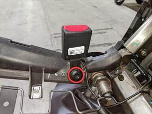 - 将第二排左侧座椅安全带带扣总成电气连接器连接到座椅靠背。