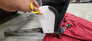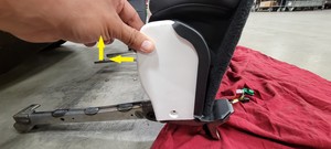 - 向前、向上拉动第三排左侧座椅靠背倾角盖板,将其从座椅总成上拆下。