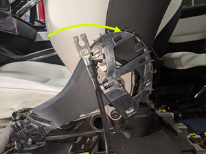 提示: 首先松开前面的卡子,然后拆下后面的锁片。转动饰板将其从座椅骨架上脱开。