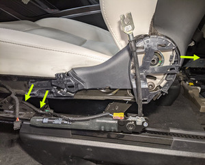 从驾驶位座椅上拆下驾驶位座椅外侧护板总成。请参阅 侧护板 - 外侧 - 驾驶位座椅(拆卸和更换)。