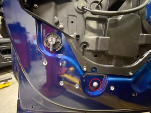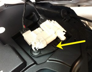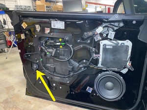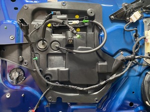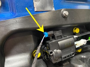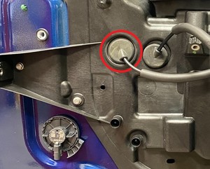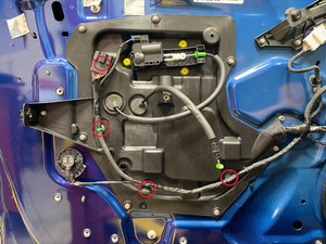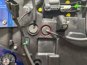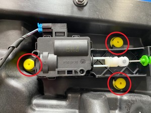 - 将左侧前车门分离电机拉索索环推入左侧前车门封闭板。