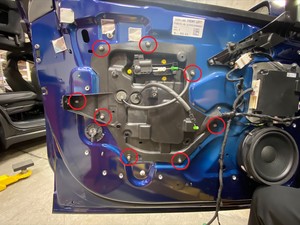 拆下将左侧前车门封闭板固定到车门总成上的螺栓(8 个)。