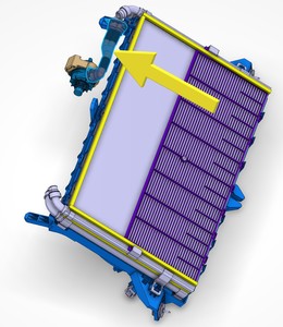 - 松开卡子,将离车动力总成泵至散热器软管从散热器上断开,然后立即堵住两个接头。