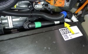 - 在车辆左前侧下方放置一个冷却液收集器。