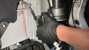 从左前空气弹簧模块松开左侧减震器线束连接器