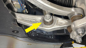 安装将左前空气弹簧模块固定到前下部尾连杆的螺栓和螺母