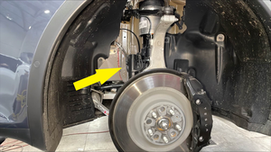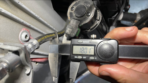 注建议使用数显卡尺,在左前空气弹簧和制动软管之间进行测量,间隙必须大于 15 mm 且小于 20 mm,如果测量值超出规格,则需返工,检查制动管路和空气弹簧是否有损坏或摩擦的迹象,如果部件损坏,则创建 Toolbox 会话并寻求上级帮助,确定是否需要进行更换
