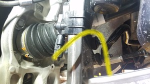 注1 个螺栓,10 毫米,6 Nm;线束排布在下连杆上方和横拉杆/轴下方