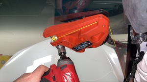 - 用电钻转动切割工具上的主轴,开始拆卸挡风玻璃。