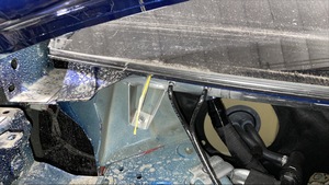 警告使用穿线器时,利用防护罩防止损坏前围板垫。