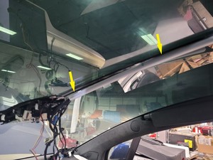 使用 Equalizer 工具将固定销(2 个)从挡风玻璃两侧顶角分离。