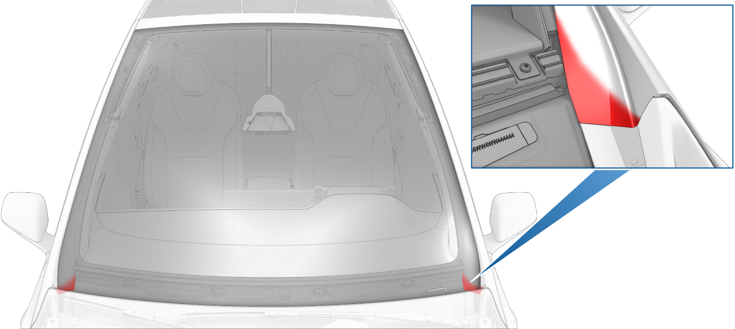 - 在协助下,安装挡风玻璃并按压玻璃所有四个角。