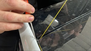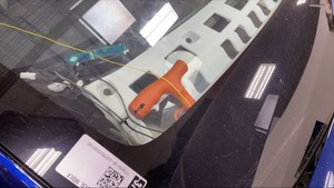 - 聚氨酯凝固期间,使用胶带将挡风玻璃固定到车身。