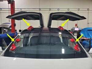 - 使用 2 个吸盘 (1080599-00-A) 分别吸住挡风玻璃两侧。