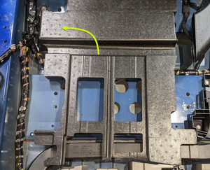 松开将前部驾驶舱地毯连接到车身的推拉式夹(2 个),然后将地毯从车身上拆下。