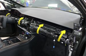 21 个卡子,6 个固定销,4 个连接器;从仪表板支架上取下所有仪表板装饰连接器卡子,然后从仪表板线束上断开连接器