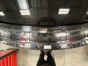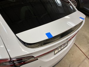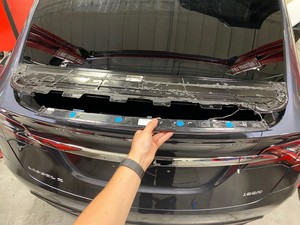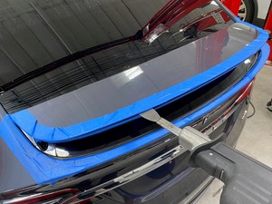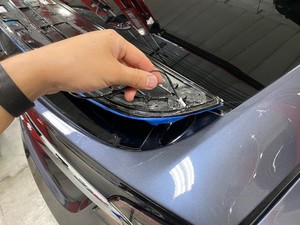 小心地在主动扰流板上部饰板和掀背尾门的边缘贴上胶带,以防止从下部扰流板总成切割时漆面损坏。
