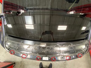 将高位制动灯放到车辆上,然后新的安装将高位制动灯连接到扰流板下翼总成的螺钉(6 个)和螺纹胶螺钉(2 个)。