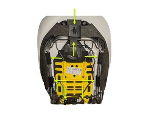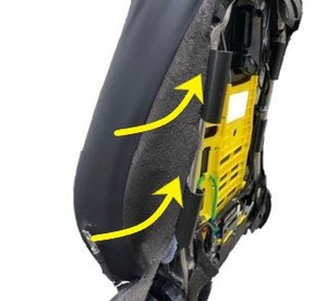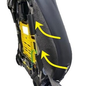 注一个线束用于座垫,另一个线束用于座椅靠背。上部支架用于辅助布线,下部卡子用于固定线束。