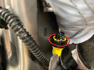 连接副驾位座椅线束连接器,然后安装用于将座椅线束固定到座椅靠背悬挂上的卡子。
