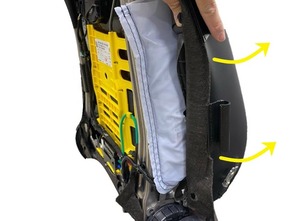- 松开用于将副驾位座椅靠背饰板总成右侧固定到座椅上的锁片,然后将饰板移到一边,留出操作空间。