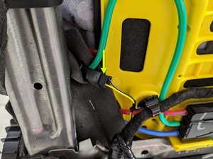 - 安装用于将较远一侧安全气囊线束固定到副驾位座椅框架上的卡子。