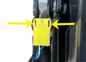 - 连接前排座椅靠背 (FSB) 通风口加热垫连接器。