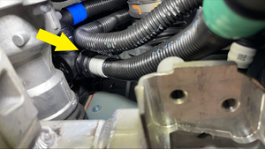 将高压电池至三通阀软管放在车上,然后安装将软管连接到三通阀的软管夹。