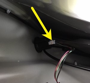 - 连接左侧鹰翼门上安全气囊电气连接器,然后安装好橙色锁片。
