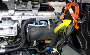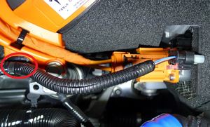 注1 个软管夹;用塞子塞住逆变器,防止冷却液溢到高压电池顶部,从车上取下软管。
