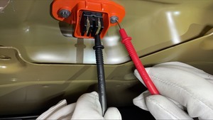 注在进行测量之前,确认仪表已调零;测量一根电缆。确认电流表安装方向正确。如果电流超过 0.5A,请勿继续断开高压连接器。在这种情况下,请再次启动车辆电气隔离,以确保所有电气设备均已正确关闭。如果电流小于 0.5A,则可以断开连接并检查电池侧高压插头处的电压。