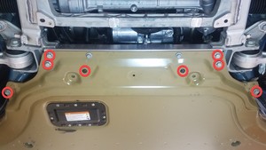 拆卸将前滑板固定到前副车架的螺栓,然后将滑板拆下。