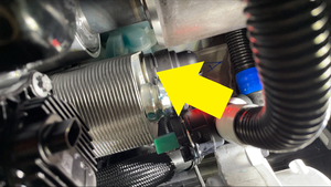 将前驱动单元 (FDU) 逆变器软管固定在热交换器上。