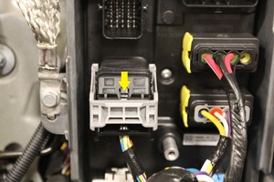 注锁止连接器(2 个)。注确认黄色锁片已完全打开。将连接器放置到位,机构将开始接合。