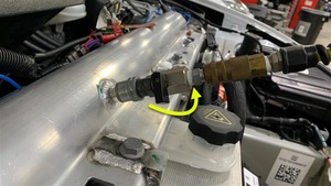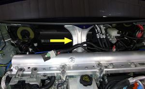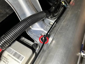 - 安装将超级歧管至电池冷却液泵供给软管固定到低压电池的软管夹。