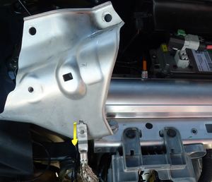 安装将前备箱线束连接到支柱塔梁的螺栓和卡子。