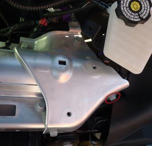 安装将远端制动液储液罐连接到左前减震塔盖上的螺栓(2 个)。