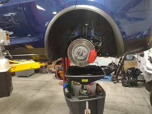- 用双柱举升机举升并支撑车辆。请参阅 举升车辆 - 双柱举升机。