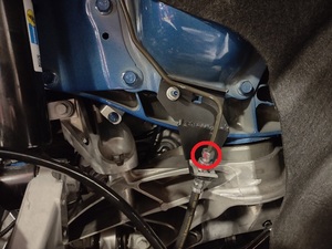 安装将左后制动软管连接到左后下部尾连杆的螺栓。