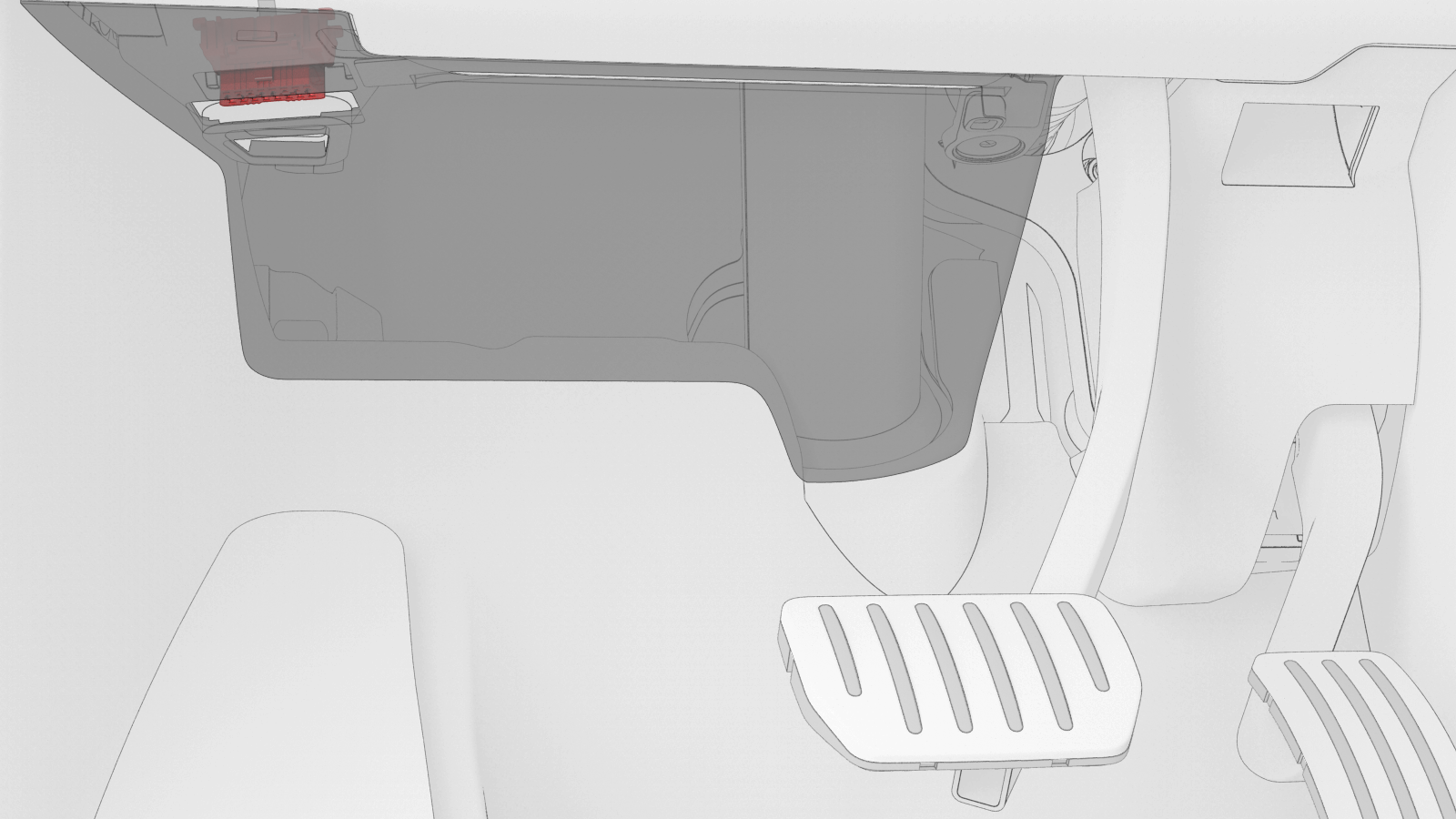 Model X 上的诊断接口位于触摸屏下,仪表板维修面板后。松开仪表板维修面板各角的锁片(4 个),以接触诊断接口。