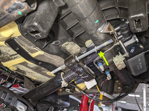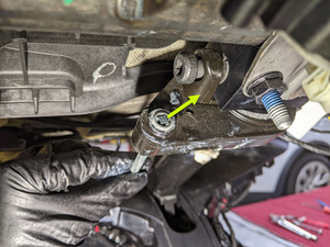 - 将第二排左侧座椅电机传动轴放置到车辆上,然后将垫圈和新的金属卡扣式螺母安装到传动轴上。
