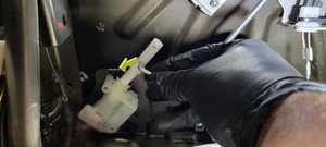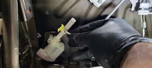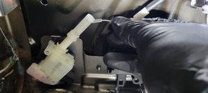 - 从执行器上松开第三排左侧座椅头枕执行器拉索。
