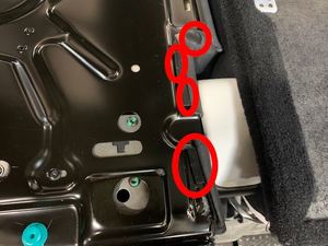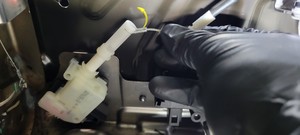 - 断开第三排左侧座椅连接器(2 个),然后将连接器穿过座椅套下半部分。