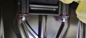 - 安装将第三排左侧座椅头枕固定到座椅靠背的固定夹(2 个)。