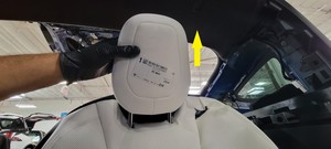 - 将第三排左侧座椅头枕放置在车辆上,然后将头枕执行器拉索插入头枕导轨开口。