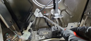 - 将第三排左侧座椅头枕执行器拉索安装在执行器上。