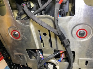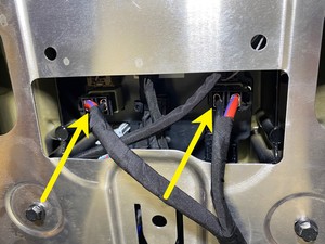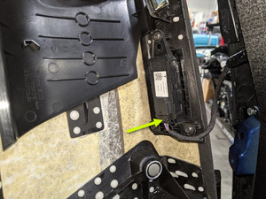 - 安装将卫星无线电天线线束连接到封闭板的卡子,然后连接天线线束连接器。