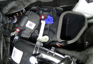 将除霜执行器放入暖通空调总成中,然后安装将执行器连接到总成上的螺钉(2 个)。