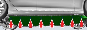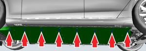 - Remove the LH and RH rocker panel moldings. See 饰条 - 门槛板 - LH(拆卸和更换).
