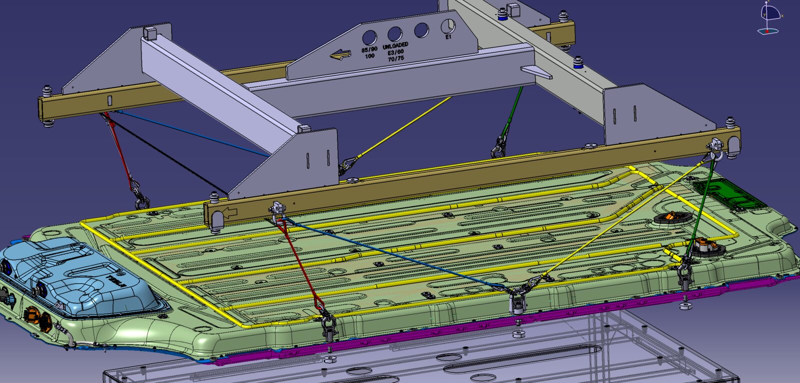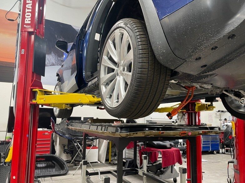 - Position the 2 post lift pads for HV battery removal.